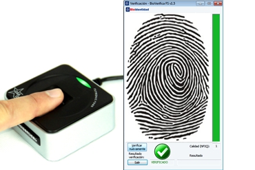 Captura y verificación de huellas dactilares conforme a normas internacionales.